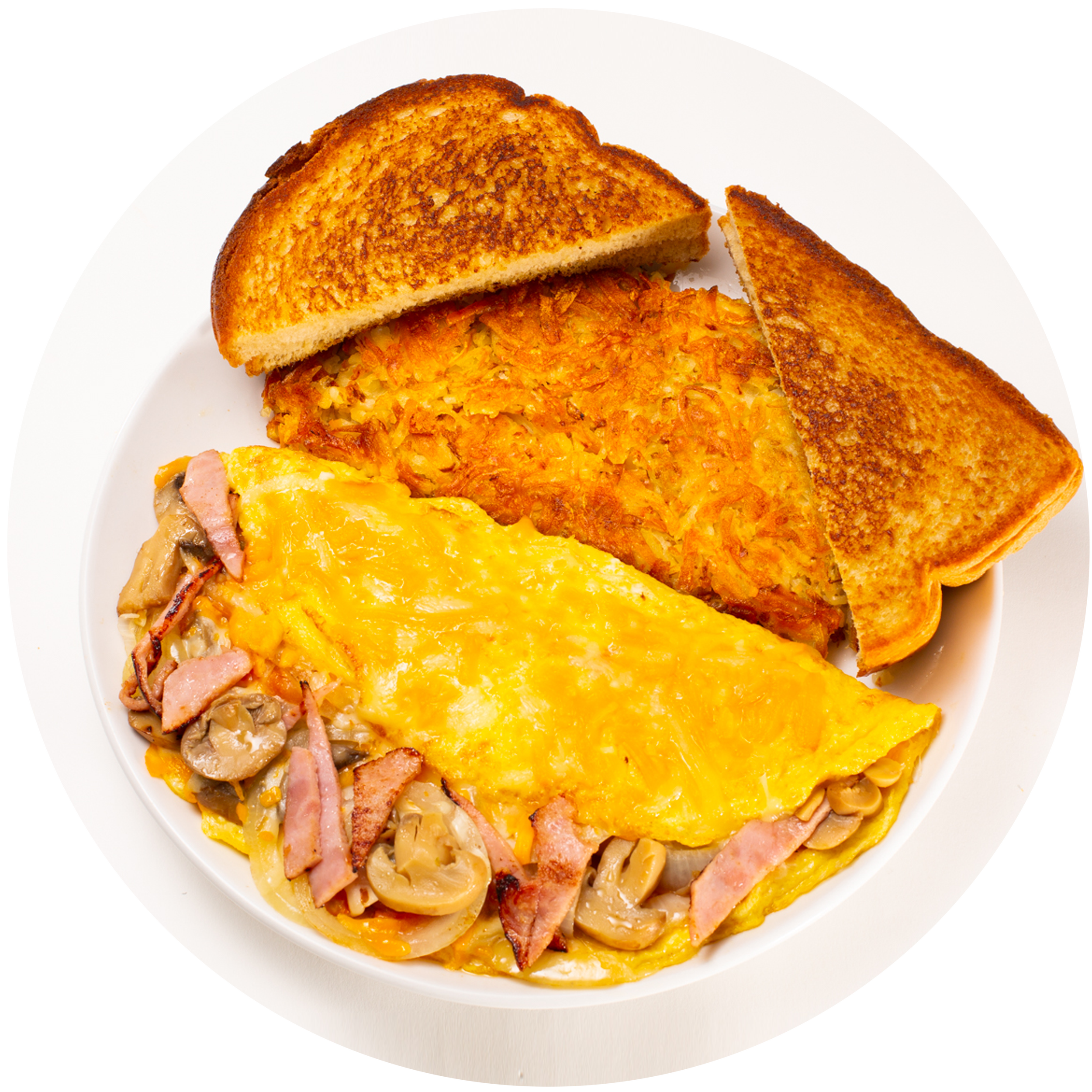 Back California Omelette Includes eggs, ham, mushrooms, onions, hash browns & choice of toast $17.99 Order